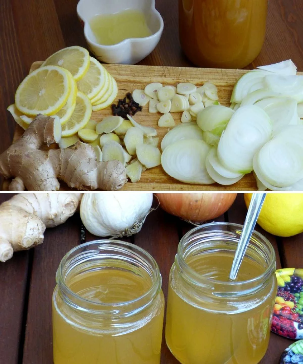 Tento sirup je skutečnou vitamínovou bombou. Spojuje v sobě léčivé účinky několika silných přírodních ingrediencí, které podporují imunitu, čistí organismus a zklidňují dýchací cesty. Cibule a česnek jsou známé svými antibakteriálními a antivirovými účinky, zázvor prohřívá tělo a tlumí kašel, citron dodává vitamín C a med vše propojuje v lahodnou směs, která tělu pomáhá se zotavit.