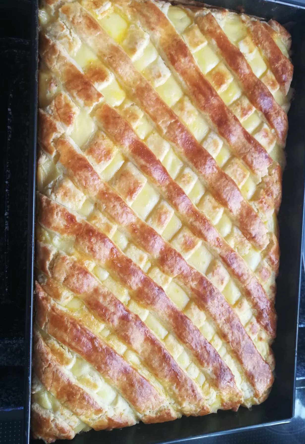 Krémový jablkový mřížkový koláč je dokonalým spojením klasického domácího pečení a jemného pudinkového krému. Vůně skořice a jablek se při pečení rozline po celé kuchyni a výsledek je vždy dokonalý – vláčný, jemný a neodolatelně chutný. Skvěle chutná ještě teplý, ale i druhý den, kdy se chutě krásně propojí.