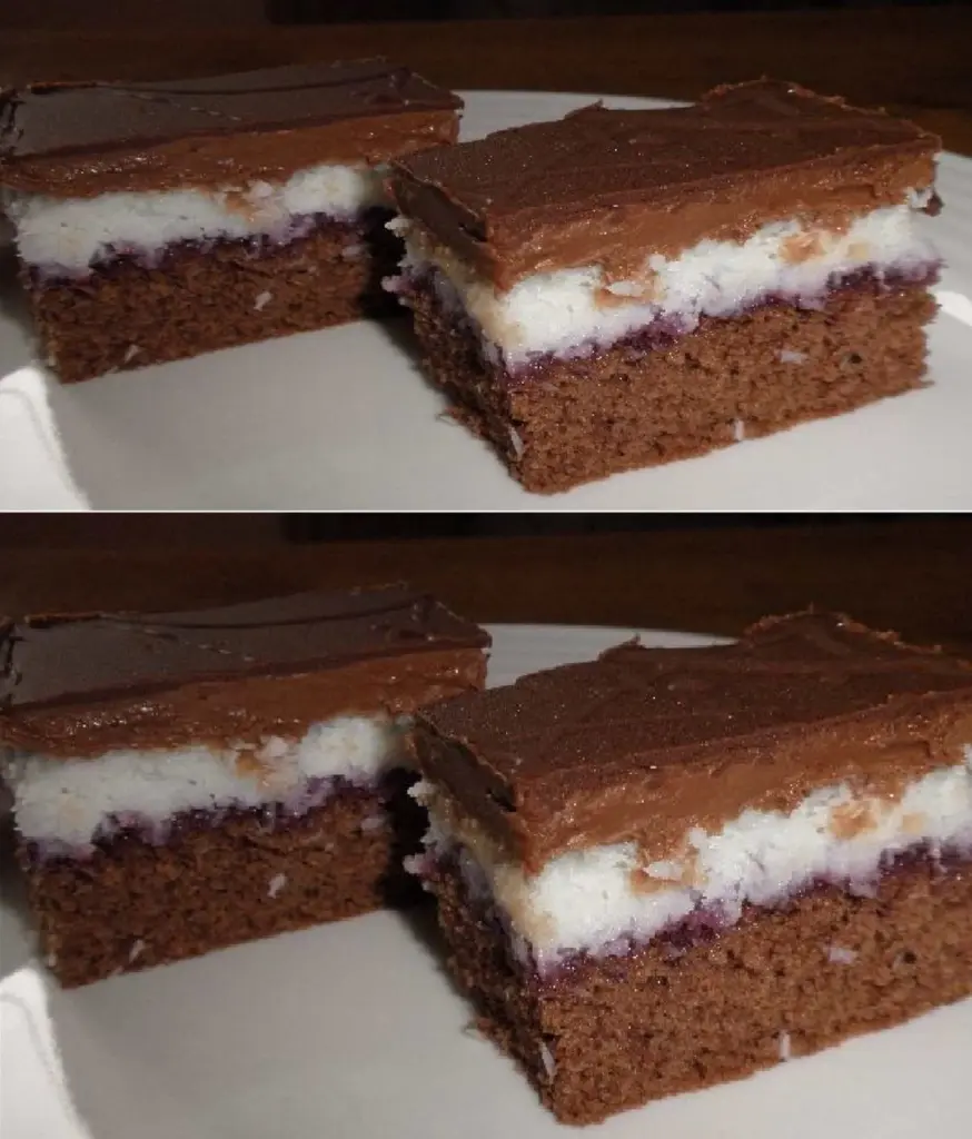 Tento čokoládovo-kokosový zákusek patří mezi klasiky, které nikdy nezklamou. Vláčný piškot, kokosová vrstva a jemný čokoládový krém vytvářejí dokonale sladěný dezert vhodný na slavnostní příležitosti i běžné mlsání. Zákusek získá nejlepší chuť po 12 hodinách odležení, kdy se jednotlivé vrstvy krásně propojí.