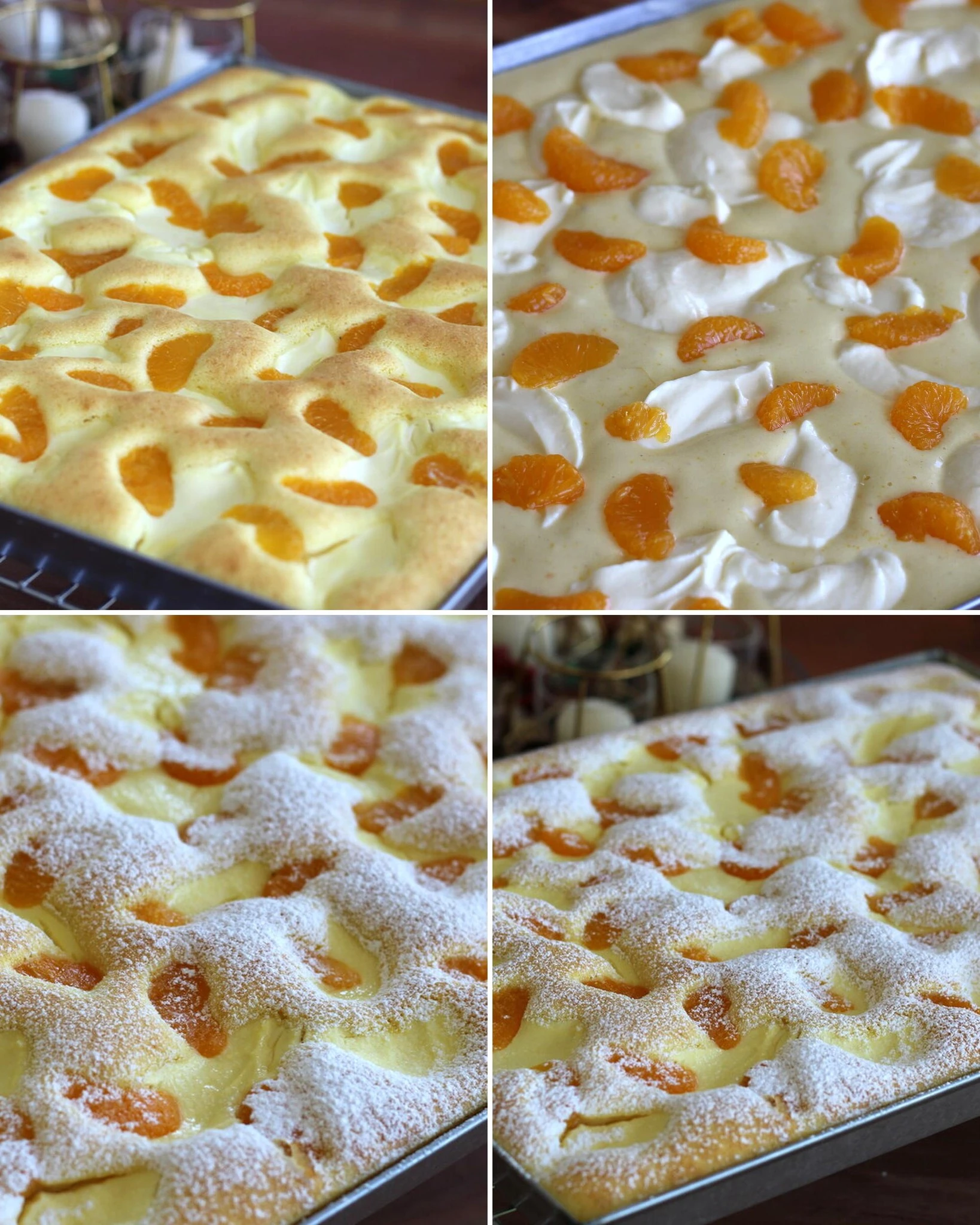 • Ovoce: Na těsto s tvarohem rozložte okapané mandarinky podle chuti. Můžete je rovnoměrně rozprostřít nebo vyskládat do vzoru.