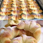 Tyto křehké rohlíky z kysané smetany s jablečnou nádivkou jsou důkazem, že z obyčejných surovin lze vytvořit dokonalé domácí pečivo. Kysaná smetana dodává těstu vláčnost a jablka s ořechy se postarají o šťavnaté, voňavé srdce každého rohlíku. Jsou ideální pro každodenní mlsání, víkendové snídaně i jako sladké občerstvení pro návštěvu.
