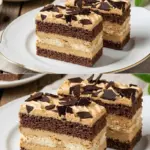 Karamelové sněhové řezy jsou luxusní vrstvený dezert, který zaujme vizuálně i chuťově díky kombinaci kakaového těsta, křehkého sněhového plátu a bohatého karamelového krému. Pokud máte rádi vrstvené zákusky s výraznou chutí, vyzkoušejte také klasický medové řezy s jednoduchou přípravou nebo elegantní trojbarevný zákusek s kakaovým korpusem, které stejně jako tyhle řezy nabízejí bohatou strukturu a lahodnou chuť v každé vrstvě.