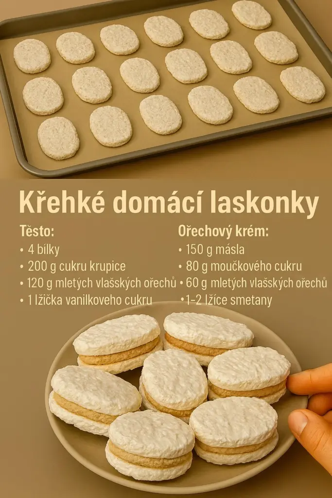 Domácí laskonky s ořechovým krémem jsou dezertem, který nezklame. Kombinace křehkého korpusu a máslového krému s ořechy vytváří harmonii chutí, která je typická pro tradiční českou cukrařinu. Pokud je necháte pár hodin odležet, chuť bude ještě výraznější a textura dokonale jemná. Skvěle se hodí na slavnostní příležitosti i jako poctivá domácí sladkost pro každodenní potěšení.