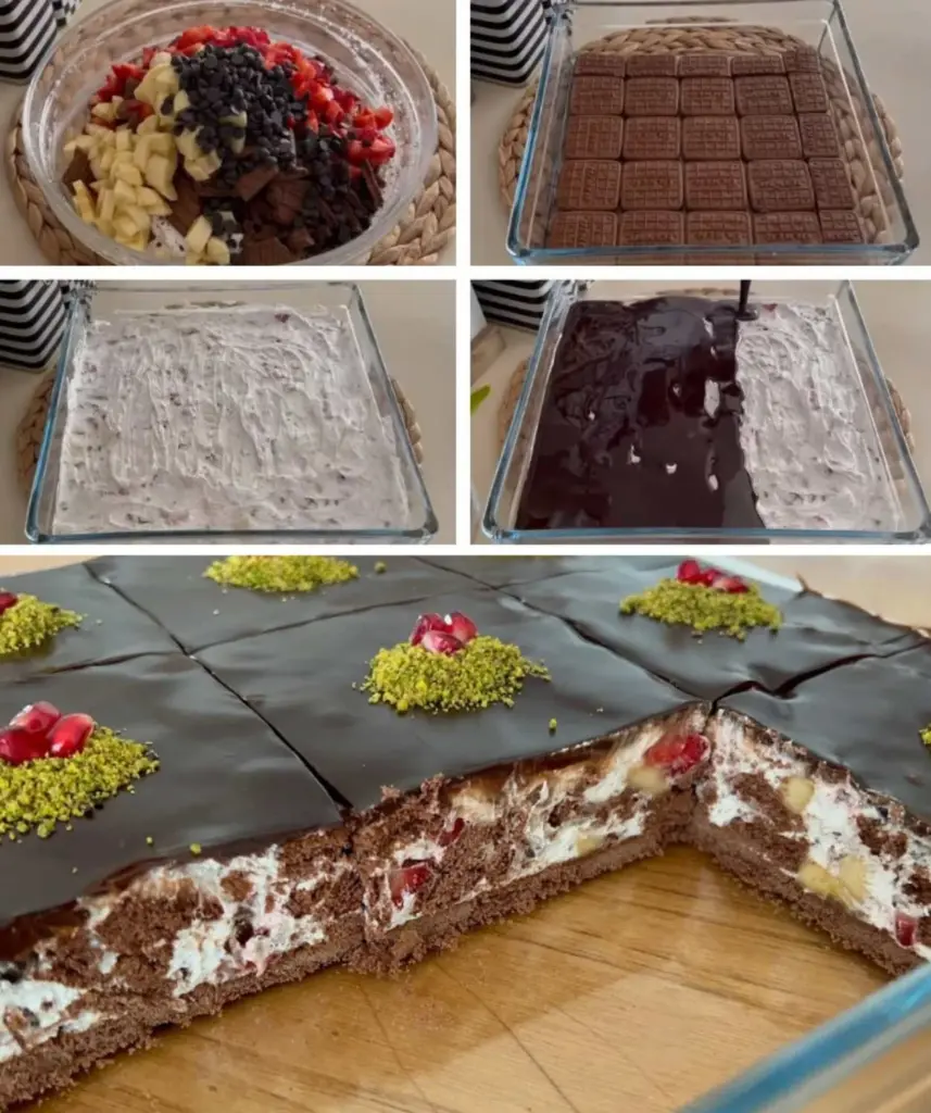 Tento nepečený dort s ovocem a čokoládovou polevou je ideální volbou, když chcete pripraviť něco efektního, ale zároveň jednoduchého. Spojení svěžího ovoce, nadýchaného krému a kakaových piškotů vytváří dezert, který chutná dokonale lehce a osvěžující. Jeho přípravu zvládne i úplný začátečník a úspěch u stolu je zaručen.