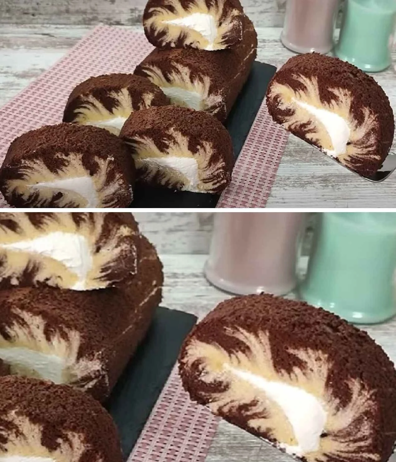 Jestli máte rádi rolády, které na řezu vypadají výrazněji než klasický piškot s marmeládou, tahle verze Tornádo stojí za vyzkoušení. Další inspiraci najdete také u receptů Jemná domácí piškotová roláda s krémem a ovocem, Šťavnatá čokoládová roláda s mascarpone krémem nebo Rychlá piškotová roláda s jahodovou náplní.