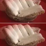 Některé recepty mají kouzlo právě v tom, že působí nenápadně, ale po prvním ochutnání si je člověk okamžitě zapamatuje. Přesně takové jsou starodávné bílé ořechové tyčinky. Jemné ořechové těsto, vrstva tuhého sněhu a pomalé sušení v troubě vytvoří křehké cukroví, které na pohled připomíná zasněžené větvičky. Právě nízká teplota kolem 100 °C a delší sušení jsou pro podobné bílkové cukroví typické, aby sníh zůstal pevný a nezezlátl.