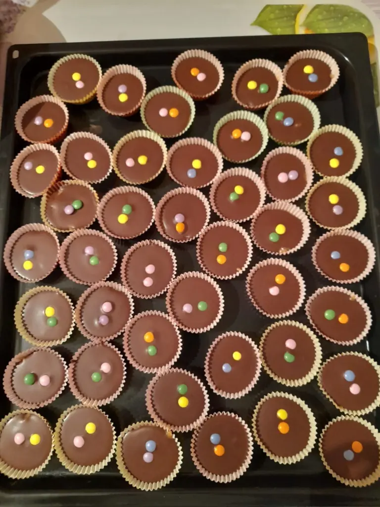 • Plnění šuhajd: Do každého papírového košíčku nalijte na dno malé množství čokolády a nechte krátce ztuhnout. Poté přidejte lžičku ořechové náplně a znovu zalijte čokoládou, aby byla směs rovnoměrně pokrytá.
