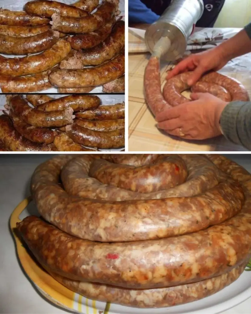 Poznámka: Pro méně tučné klobásy lze snížit množství sádla na cca 1,5 kg, úplné vynechání se ale nedoporučuje – klobásy by byly suché.