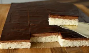 Kokosový zákusek s čokoládovým krémem a polevou – dokonalá sladká pochoutka