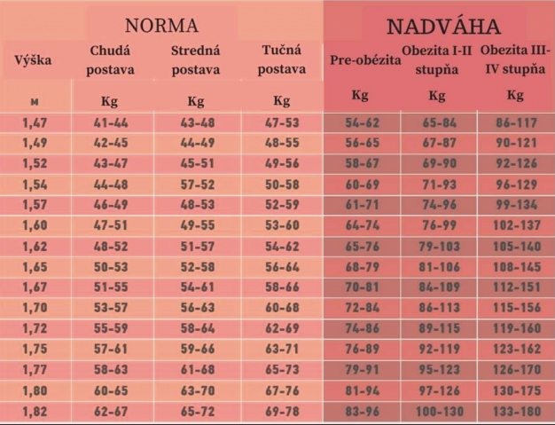 Připravili jsme pro vás tabulku, podle které se můžete podívat, zda máte nadváhu, nebo naopak.